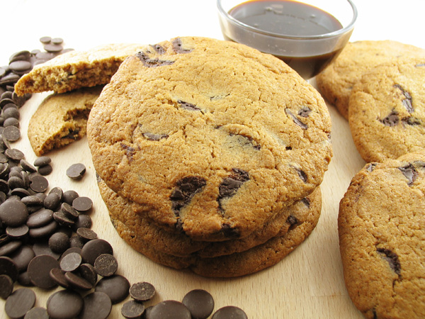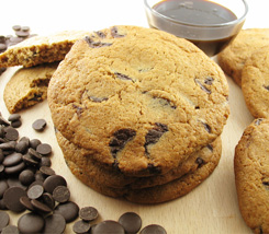 Heller Cookie, mit dunklen Zartbitter-Schokostückchen.