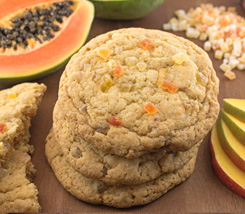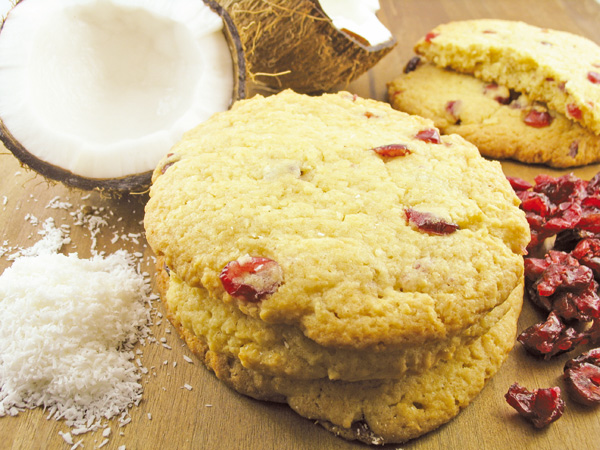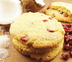Zutatenliste (PDF)Heller Cookie, mit saftigen Cranberries, leckeren Kokosflocken und einem Hauch von Orange