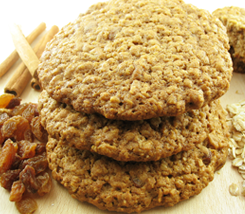 Zutatenliste (PDF)Heller Cookie, ein saftiger Keks mit Haferflocken, Zimt und Rosinen.